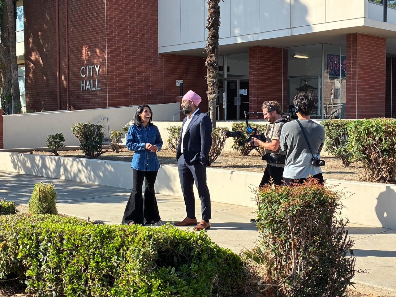 I loved the experience of learning about my own community, especially aspects of the Sikh experience that are so different from my own. We visited the first gurdwara in the United States, hung out with Sikh farmers in Yuba City, met with Sikh political activists in Bakersfield, and spent time with a Punjabi-Mexican descendant in LA. All of it was so eye-opening, and as I kept saying to our crew and director throughout our trip, there’s something special about hosting a show that features a Sikh story.